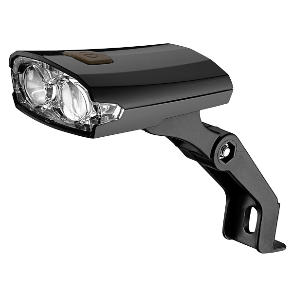 • Front light LED • 2 x LED (4 LUX) • Incl. USB 2.0 charging cable • Bracket system with fi nger screw • Black version with handlebar and V-brake bracket • Steady + fl ash + steady 50% • Burning time 4 HRS